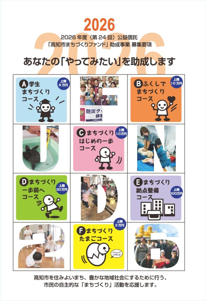 公益信託高知市まちづくりファンド 2026年度募集の受付がまもなく始まります。